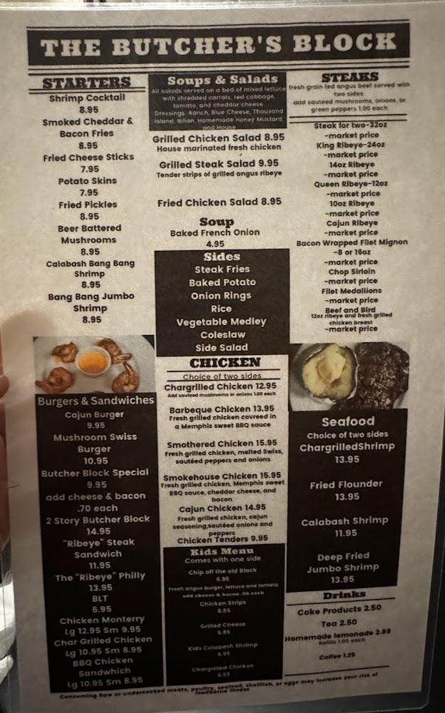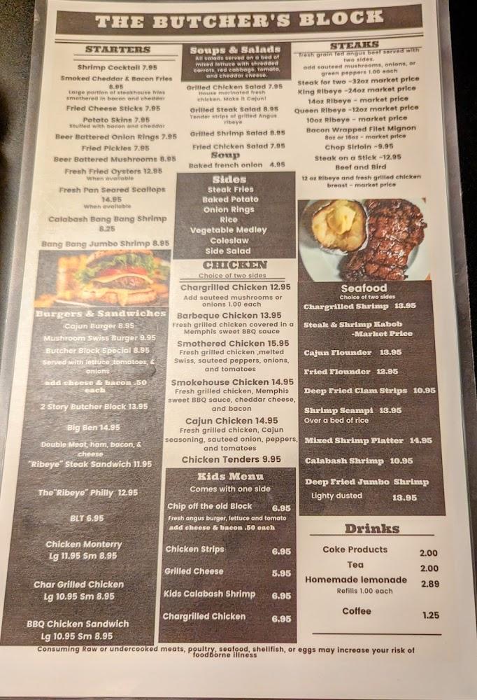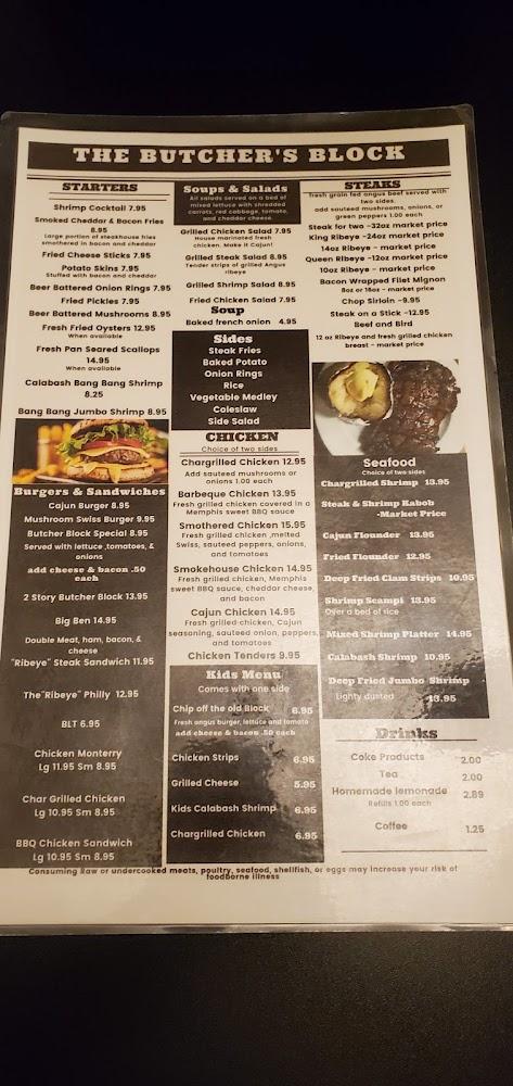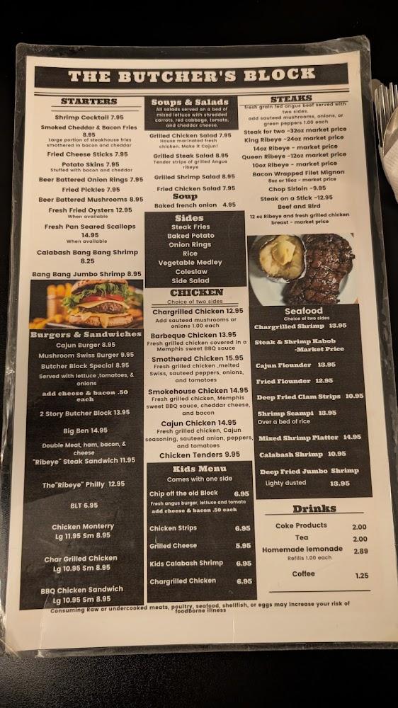 Discover The Butcher's Block, your premier American grill restaurant in Greeneville, TN. Located at 125 Serral Dr, we offer a delightful dining experience with a focus on local specialties, excellent coffee, and decadent desserts. Enjoy a relaxed atmosphere perfect for solo diners, groups, or family meals. Our menu features traditional dishes like mouth-watering steaks and crispy fries, complemented by a selection of wines and healthy options. With amenities like accessible seating and free parking, we strive to cater to everyone. Whether you choose to dine in, takeout, or get delivery, we promise quick service and a memorable meal. Reservations for dinner are recommended!